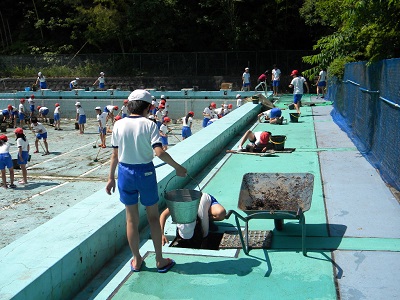 午前中に、5年生が掃除をした低学年プールは、すでにきれいになっています。