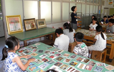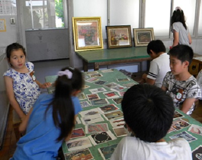 知多市歴史民俗博物館から、知多市にゆかりのある作家の絵(本物)をお借りし、鑑賞しました。