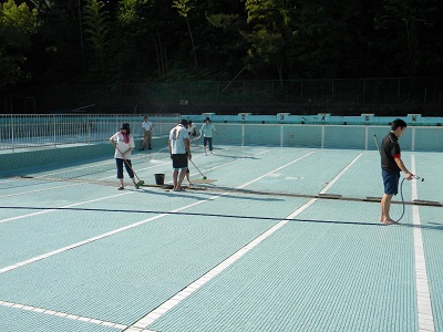 水を入れて、気温と水温の条件が整えば、12日から水泳指導を開始します。