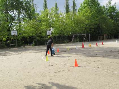おはようございます。職員は、早朝から、運動場のぬかるみにはまりながら、運動場のライン引きに汗を流しました。