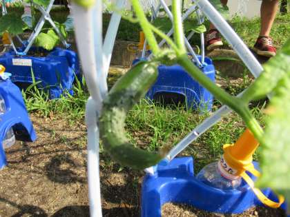 さて、今朝、2年生の子が血相を変えて「校長先生!」と叫びながら走ってきました。何が起きたのかと思って言われるまま慌ててついていったら、「見て!キュウリができてきた!!」とのこと。