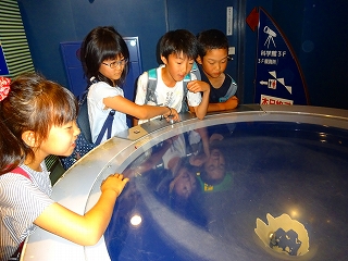 空の科学館では、プラネタリウム鑑賞をしました。理科で学習した夏の大三角いろいろな星座について教えていただきました。夏にはぜひ星座早見盤を使って星の観察をしていただきたいです。その後昼食までの間に展示コーナーの見学もしました。弁当は体育館のアリーナを借りて食べました。それぞれ弁当のおかずを自慢し合いながら、うれしそうに食べていました。