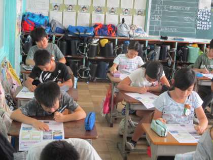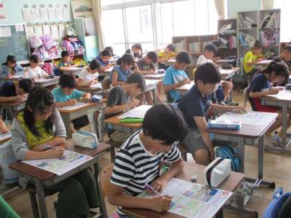 5年生の社会科です。ここまで学んできた「さまざまな土地のくらし」のテストをしていました。しーんと静まりかえった中、鉛筆の音だけが聞こえてきます。高学年らしいテストの光景ですね。