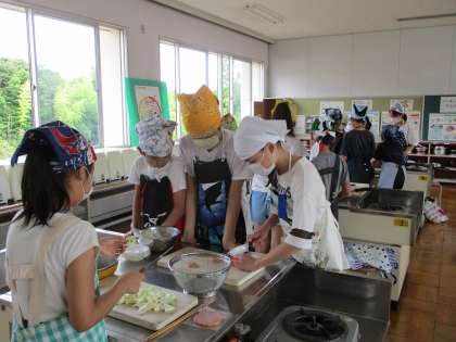 6年生の家庭科です。先日計画を立てた「野菜いため」の調理実習をしていました。5年生のときからの積み上げがあるので、ずいぶんと手つきが慣れていますね。グループで協力して進めるという点でも、さすがという感じです。おいしい野菜いためができそうですね。