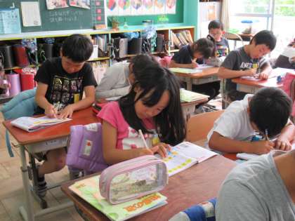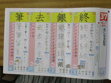 3年生の国語で「気になる記号」という「書くこと」に関わる学習に入っています。今日は、教科書に出てくる新出漢字の学習をしていました。終とか銀とか筆などなど、難しい漢字が多くなってきましたね。小テストがあるようで、みんな一生懸命復習していました。