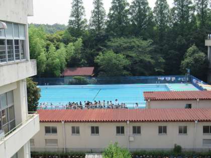 2年生がプールでの学習を行っていました。昨日まで、1・2時間目のプールは水温と気温が基準に達しなくて3時間目から入れる日が続いていたのですが、今日は1・2時間目から基準に達しました。梅雨時ですので、入ることができる日というのは貴重です。しっかり水に慣れてくださいね。