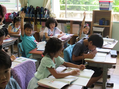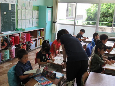 2年生の算数で、「たしかめましょう」というページをやっていました。ここまで学習してきた筆算のまとめの問題のページです。先生方が机間指導をしながら、筆算の仕方が身についているか確認していました。
