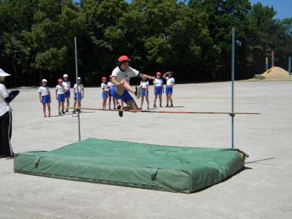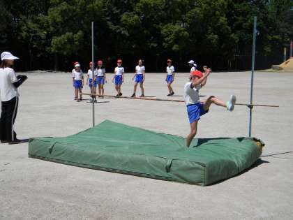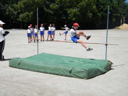 運動場では、6年生が、走り高跳びに、がんばって取り組んでいました。