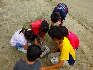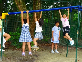 2年生のペアと一緒に虫取りをしたり、うんていをしたりして一緒に遊びました。手をつないで一緒に運動場に向かう姿はとてもほほえましいです。