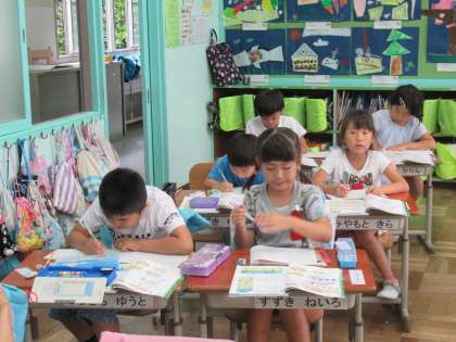 1年生の算数で、「かずのちがい」について学習しています。数図ブロックを使いながら、二つの数量の差について考えていました。ひき算の基礎にあたる学習ですね。みんな集中していて、たのもしい限りです。