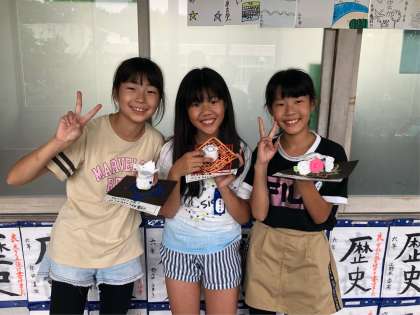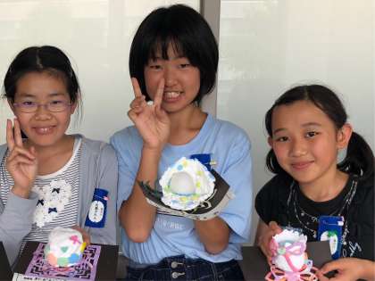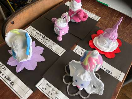 粘土を使って自分の好きな形を作り、その内側から光る仕組みとなっています。授業では光を付け、鑑賞会を行いました。
