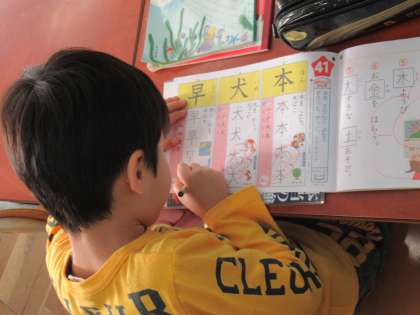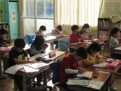 1年生の国語で、「ずうっと ずっと 大すきだよ」の学習に入ります。新しい漢字の学習をしていました。どんどんと新しい漢字を習っていきますね。大変だと思いますが、すごく集中して取り組んでいます。