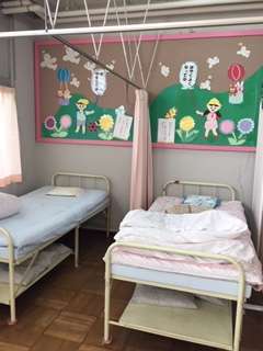 ひんと2 ねつがでたり おなかが いたいときは べっどで やすみます。