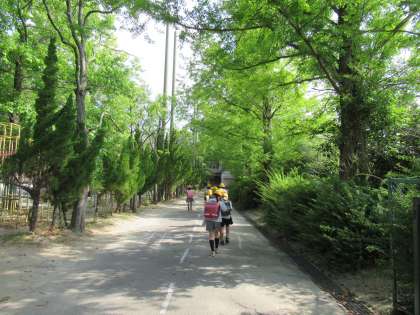旭北小は、南門の階段をのぼると、メタセコイア並木(「メタセロード」と名付けています)の木陰を通って、校舎に向かいます。子どもたちにとっては何気ない日常ですが、きっと大きくなってから懐かしく感じることになるであろう、風情のある光景だと思います。