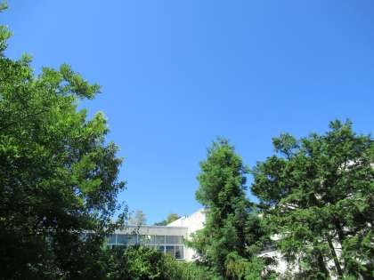まもなく梅雨入りと思うと、この雲一つない空が、すごく貴重な光景のように思いますね。(南館3階 6年生教室前の廊下より撮影)