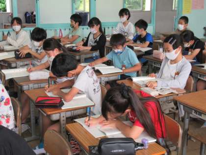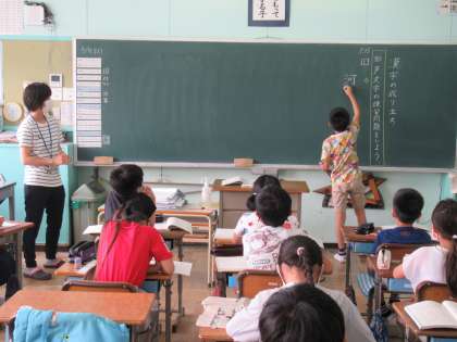 5年生の国語です。「漢字の成り立ち」の学習をしていました。小学校に入学してからすごくたくさんの漢字を学んできましたが、漢字の成り立ちについて、より専門的に学んでいます。いわゆる「象形文字」「指事文字」「会意文字」「形声文字」ですね。高学年らしい学習です。