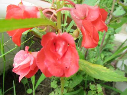 そして、いちばん下はホウセンカではないでしょうか。これ、保健室の前にひょっこり咲いていたのですが、これ、去年子どもたちが育てたホウセンカのこぼれ種から育ったんですよね。これも花言葉を調べてみたら、「一人にして」と出てきて、これも思わず笑ってしまいました。一人にして??