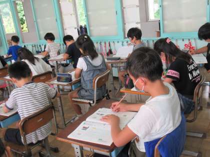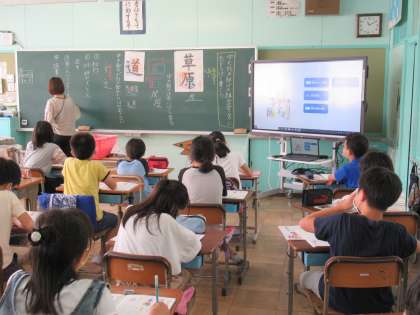 5年生の書写です。「草原」という字に注目し、外の部分と中の部分の組み立て方をどうすると字が整うか考えていました。硬筆(鉛筆)でまずは確実に理解をし、実際に書いて確かめています。