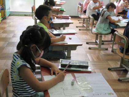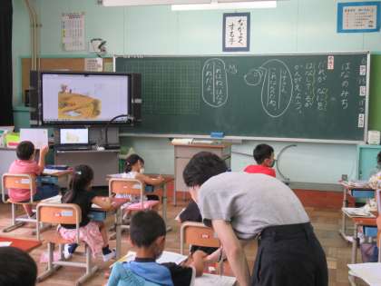 1年生の国語で「はなのみち」の学習が進んでいます。お話を読んで、だれがなにを話しているのか、考えていました。