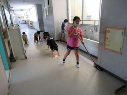 今週から通常日課となり、清掃もスタートしました。おしゃべり、密に気をつけて、自分の担当箇所をきれいにしました。消毒は、引き続き児童下校後に教師が行います。