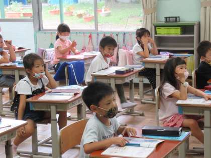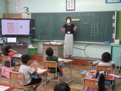 1年生の算数です。いわゆる「数の合成」。すごく大事な勉強です。数図ブロックで確認してから、「6は、1と5、2と4、3と3・・・。」と声に出して身につけていました。