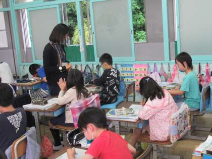 4年生の社会科です。都道府県の名称と位置を身につける学習が進んでいます。今日は白地図に色を塗りながら、東北地方の都道府県を覚えていました。