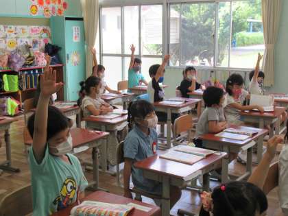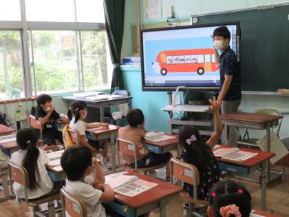 1年生の算数です。「ふえたりへったり」という学習に入りました。その名のとおり、具体物の数の変化について考えます。たし算やひき算につながっていく活動です。