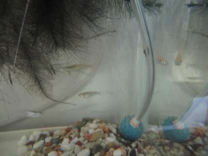 金魚とメダカは気持ちよさそうに泳いでいます。子どもたちが、「この中には、赤メダカと黒メダカと白メダカがいるよ。」と教えてくれました。確かに、はっきりと黒いメダカ、赤みがかったメダカ、そして白っぽいメダカと3種類いました(写真ではわかりませんが・・・)。