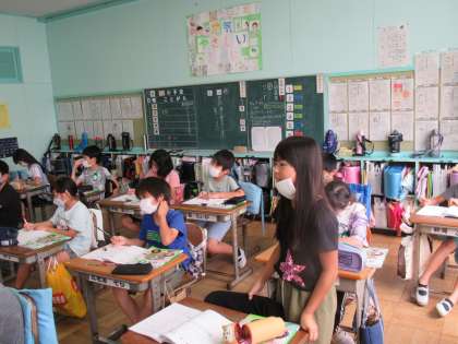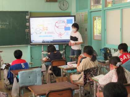 4年生の理科です。学習キットを使って実験したことをまとめる時間でした。乾電池の向きを変えるとどうなったか、乾電池のつなぎ方を変えるとどうなったかを思い出し、学習のまとめをしていました。