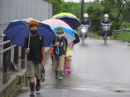 知多市は、旭北っ子が登校する時間帯は雨が残っていましたが、登校し終わる頃には雨もほぼあがり、空も明るくなってきました。