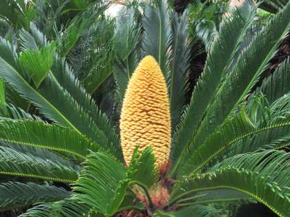 本校のこのソテツは雄花で、トウモロコシのような黄色の花からそれがわかります。