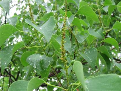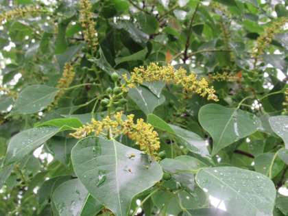 一本一本の木についている花を見ていくと、同じナンキンハゼなのに花の様子が大きく2種類あるような気がして、気になっていました。単純にナンキンハゼの品種の違いかもと思っていましたがどうやら違うようです。