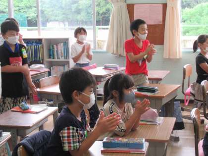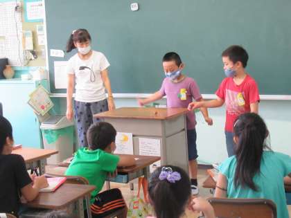 3年生の国語で学んできた「こまを楽しむ」。自作でこまを作って楽しみ、作者の主張であった「回る様子や回し方でさまざまな楽しみ方のできるこまをたくさん生み出してきた」を体感しています。今日は、文中に出てきた「さか立ちごま」を楽しんでいました。名人たちが次々回し、見ている子たちは固唾をのんで見守り、うまく回ると思わず拍手がわき起こる、素敵な光景が見られました。