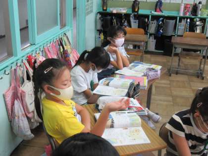 4年生の社会科です。「わたしたちの県の様子」についての学習が進んでいます。今日は、濃尾平野の気候と、その気候に合わせた農作物について調べていました。社会科の学習が3年生で始まってから、市から県へとどんどん視野が広がっていきます。