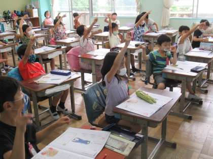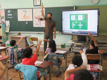 2年生の書写です。書き順を意識して字を整える学習をしていました。すでに1年生の国語で習った十、上などの書き順を確認し、声、点など、十や上がパーツとして含まれている漢字を書いていました。