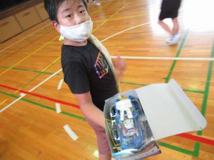 4年生の理科で学んできた電流。最後に体育館で、車を走らせて楽しい時間を過ごしました。到達したらちょうど片付けてしまっていたので、楽しそうな様子が紹介できませんでした。一人一人の車にちょっとした飾りがついていて工夫されていました。写真がうまくとれていませんが、雰囲気だけでも伝わると思いますので紹介しました。