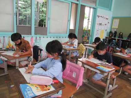 2年生の算数です。「図をつかって考えよう」という学習をしています。色紙を17枚もっていて9枚使うと何枚残るか。これを図にかいて考えていました。年齢が上がって中学生や高校生になっても、こうやって図で考える力は求められます。その基礎の部分ですね。