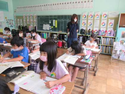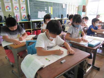 3年生の国語です。相手を意識して案内の手紙を書く「気もちをこめて『来てください』」の学習に入りました。今日は、案内の手紙を書くに当たって、つたえることをどう整理するか学んでいました。書くことの学習も、こうやって徐々に積み上げられ、高度な内容になっていきます。
