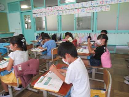 1年生の算数です。今日は、ここまで学んできたひき算について、ひきざんカードの問題を考え、習熟を図る時間でした。具体物や数図ブロックで考えて理解してきたひき算について、こうやって確実に定着させていきます。