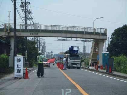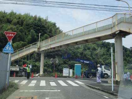 日長1の歩道橋工事が始まりました。工期は10月末までの予定。今日は、足場を組んでいる関係で車や自転車の走行にも影響が出ています。風水害等の影響なく、順調に終わることを願ってやみません。