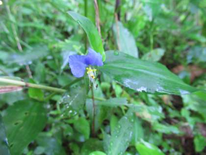 ビオトープでツユクサが咲いているのに気がつきました。ひっそりと奥の日陰で咲いているので、昨日まで気がつきませんでした。