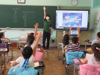 2年生の算数です。「星の数はなんこかな」という学習をしていました。教科書のきれいなさし絵を見て、星の数を数えています。楽しげな学習ですが、これは次から「100をこえる数」の学習に入るための準備の学習です。