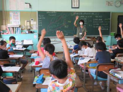 5年生の社会科です。水産業の学習が進んでいます。今日は、日本の水産業がさかんな理由について、資料をもとにみんなで考えていました。そして、さまざまな漁の仕方について理解していました。