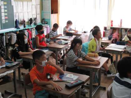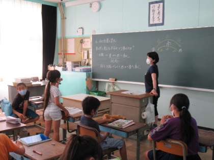 4年生の理科です。月の動きについての学習をしています。あえて4時間目に空を見に外に出て、みんなで一生懸命に月を探しましたが見つけることができず・・・。日中に見えるときもあったのに、今はなぜ見えなかったのか。この疑問をみんなで話し合うところから授業は進んでいました。