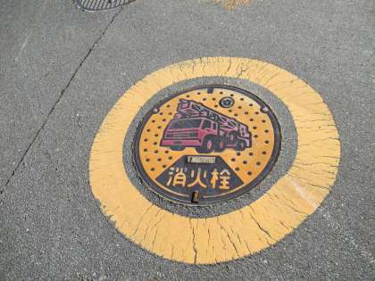 災害シーズンを迎えていますので、南門にある災害にかかわるものを紹介します。本校の標高を示す看板、そして消防隊が消火作業に使用する消火栓です。