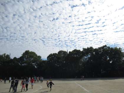 空を見上げると・・・。写真でどれだけ伝わるかわかりませんが、言葉を失うほどの見事な雲。何人かの子どもたちと、しばしの時間、雲を眺めました。