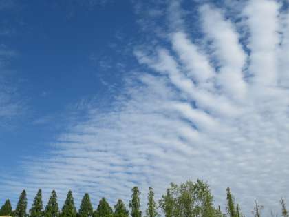 巻積雲、「うろこ雲」や「いわし雲」とも言われ親しまれている。特に秋に美しい姿を見せる、秋の雲の代表選手。