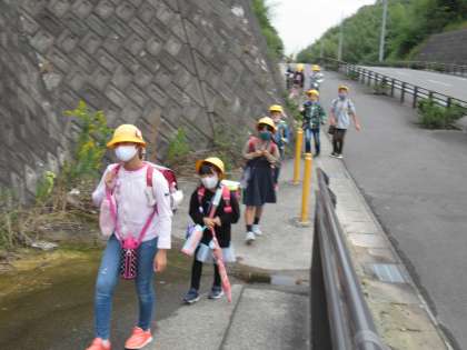 おはようございます。天気予報では午後は雨が降るかもしれませんので、多くの児童が傘をもっての登校です。