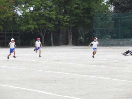 続いて50m走です。みんな全力疾走で、かっこいいです。クラスの応援があるから、気持ちも盛り上がります。