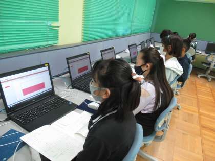 5年生の総合的な学習「ライフ」の時間です。食について各自が追究していますが、いよいよプレゼンテーションを作ります。メディアルームに入って、先生が児童各自のパソコンに作り方の手順を示していました。子どもたちは、目の前で繰り広げられるプレゼンテーションの作成の様子を見て、あっという間に覚えてしまいます。完成が楽しみです。